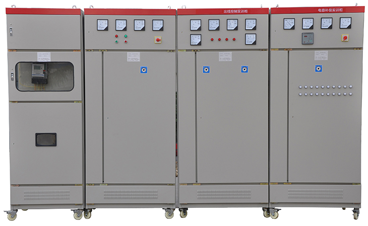 低压供配电技术实训实训装置主要由计量柜、进线柜、补偿柜及出线柜四部分组成。柜体装置有三相有功电能表、三相无功电能表、电流互感器、接线铝排、隔离开关、万能低压断路器、补偿电容、功率因数控制器、低压断路器、指示仪表等器件。适用于职业学院、技工学校等用于高级维修电工的实训考核。