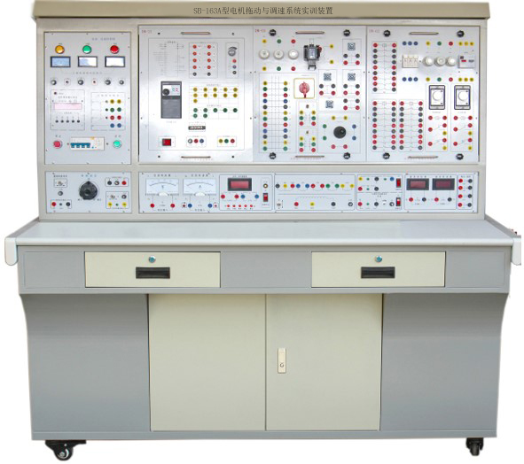 电机拖动与调速实训装置为配合我国职业教育和就业人员实际操作、培训、鉴定的需求,我公司综合了大中专院校、职业院校、技工学校的《电力控制技术》《电力拖动控制线路与技能训练》《工厂电气控制技术》《继电接触控制技术》《PLC原理及应用技术》《变频调速》等相关科目的实验及实训教学内容而研发了本装置。装置采用挂箱结构,实训项目可扩展性强,可扩展电工技能等等实训项目。所有的元器件通过导线引到接线端子上,有利于保护器件,通过线槽走线,接近工业现场。