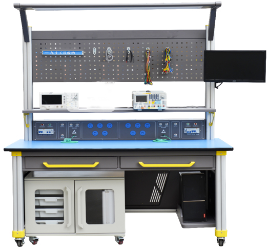 该设备主要由工作台、实训屏、实训屏模块、工具柜、电路实训模块