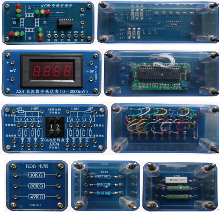 (透明电子元件模块示例图,共9块板,140多只透明有机塑料封闭元件盒)