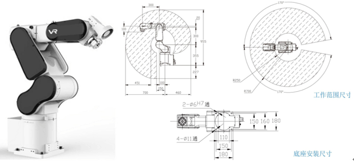 外形尺寸约为1500×1000×1600mm。工作台板采用工业铝型材拼接搭建,台面上布有T型槽,通过M6快速拆卸的T型螺母和弹簧螺母块安装不同模块。机台上有机器人装调区和基础实训扩展区。机器人装调区上有一个安装平台,该平台可以360°旋转和固定,这样安装人员可以在固定位置对机器人无死角安装。扩展区可以安装基础实训模块、搬运码垛模块等。平台的背板可装夹机器人安装工艺文件。