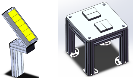 码垛模块采用银色铝合金材质,包含:码垛底板,不同大小的码垛工件。