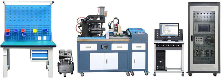 1.实训台:采用铁质双层亚光密纹喷塑结构,包括控制区域和机械装调区域两部分。控制区域主要由控制面板、电源转换接口、控制按钮等组成;机械装调区域采用铸件操作台面,学生可在上面安装和调整各种机械机构。