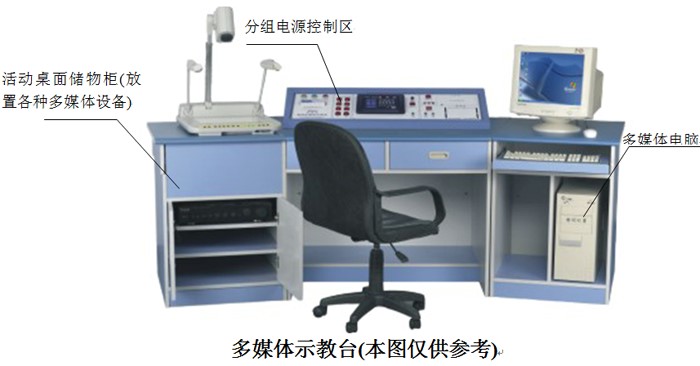 该设备是根据实训室教学管理的要求而设计开发的多功能型多媒体网络化示教控制系统。系统采用半圆形设计,分为图像影音控制区、电源、网络控制区、计算机控制区等三大部分,配套有网络控制系统、影音控制系统、电源控制系统及智能考核软件、网络监控管理软件等软硬件设备,可对学生系统进行电源控制,计算机网络控制、工控设备网络控制等。