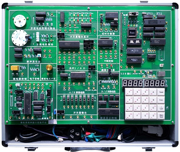 1、由铝木合金箱体、开关电源、实验系统主板、和扩展实验电路模块组成。