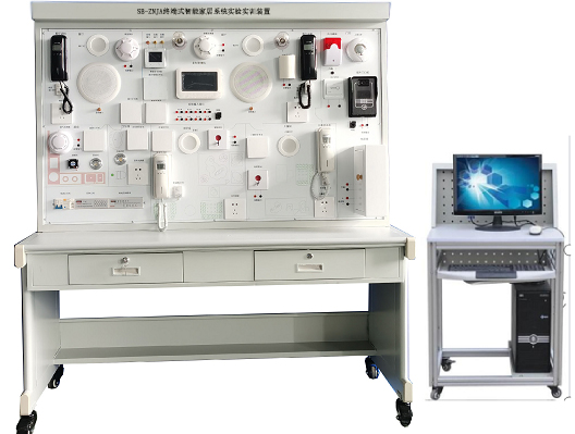 终端式智能家居系统实验实训装置的控制部分全部采用实物,控制对象采用仿真模型,整个实训装置主要由灯光电器、灯控模块、编程电缆、编程软件、声光报警器、感烟探测器、燃气探测器、管理软件系统等组成。