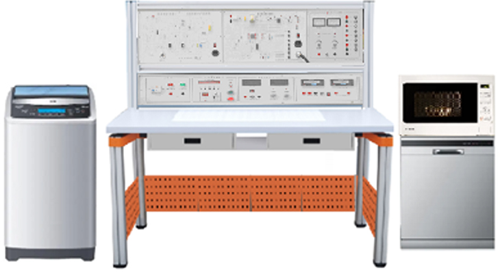 装置配套有一套真实的家用电器装置,实可独立折装,也可以引线出来接入电气控制板,从而完成不同主板之间替换,并了解各种常用家用电器系统的结构,工作原理、组成模式。家用电器包括: