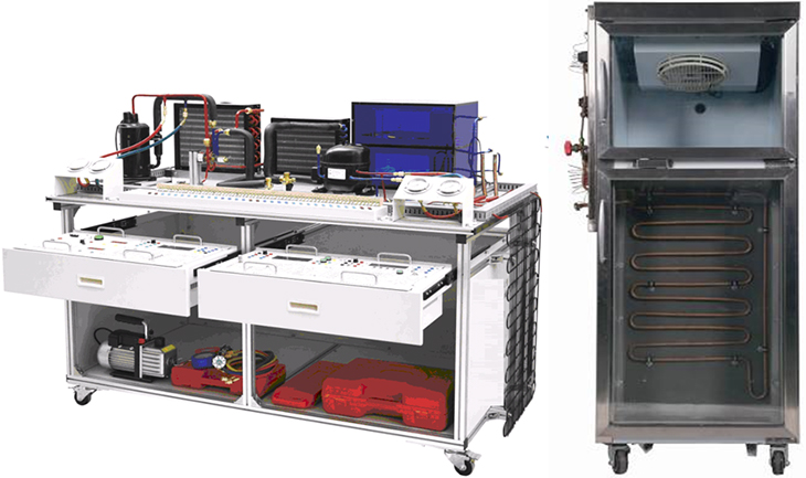 双温冷柜模块系统采用模块化设计,由网孔板、制冷系统、冷柜箱体、冷柜电气实训考核模块、制冷专业工具及配件等组成。