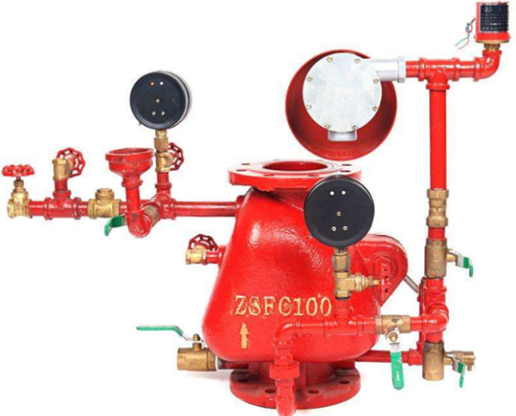ZSFZ湿式报警阀是只允许水单方向流入喷水灭火系统,并在规定的压力和流量下驱动配套部件报警的一种单向阀。它与水流指示器、压力开关、洒水喷头等组成的湿式自动喷水灭火系统是一种应用极为广泛的固定式灭火系统。该系统管网内常年充满一定压力的清水,长期处于伺应工作状态,当保护区域内某处发生火灾时,区域内环境温度升高,洒水喷头的热敏感元件(玻璃球)中的有机溶液发生热膨胀而产生很大的内压力,直到玻璃球外壳发生破碎,从而开启喷头喷水,并且自动启动整个系统,发出声光报警信号,以达到火灾报警及控制火灾、扑灭火灾之目的。