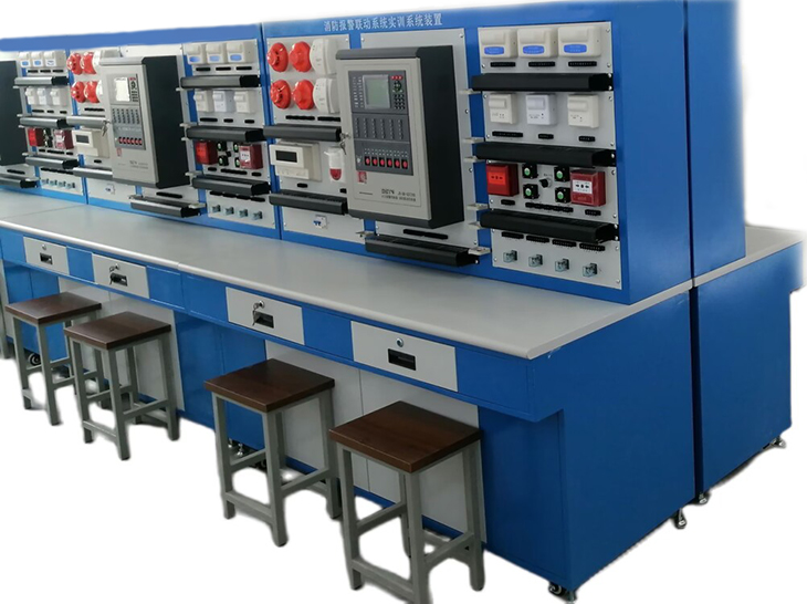 消防报警联动系统实训装置,本系统在智能建筑中通常被作为智能建筑三大体系中的BAS(建筑设备管理系统)的一个独立的子系统。该系统是通过消防系统中各个探测设备(烟感探测器及温感探测器)的参数变化进行火灾报警,并通过相关信号以实现消防的联动控制。系统能进行各种模拟火灾和报警联动操作演示、系统的设置、联动编程、线路设计、联网、线路及设置故障的判断及排除等实训。
